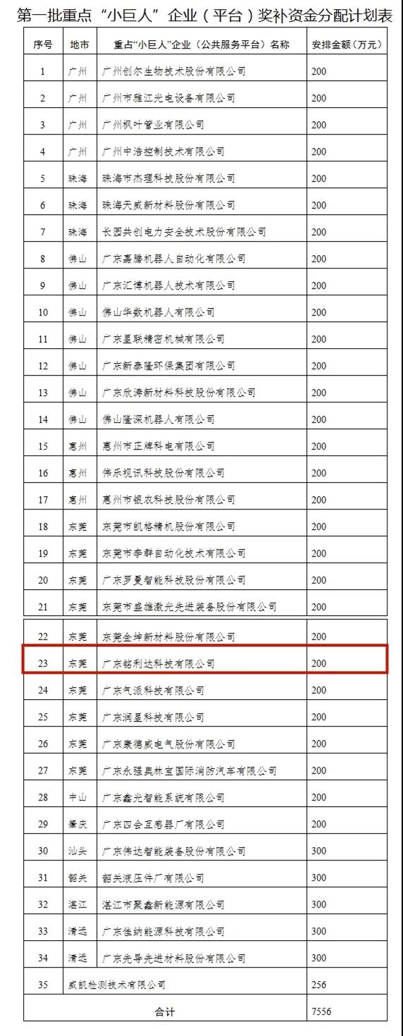 据了解,除国家级奖励外,上述企业还将获得省级、市级的奖金奖励。目前,东莞市出台了《东莞市工业和信息化专项资金管理办法》《东莞市“3+1”产业集群试点培育专项资金管理办法》,东莞市工信局正实施传统产业“专精特新”企业技改项目、“专精特新”企业技改项目、认定奖励项目、股份制改造项目等4项支持政策,专精特新企业可申报。其中,企业认定奖励项目,东莞市将对获国家级专精特新“小巨人”称号的企业,一次性给予50万元的奖励。